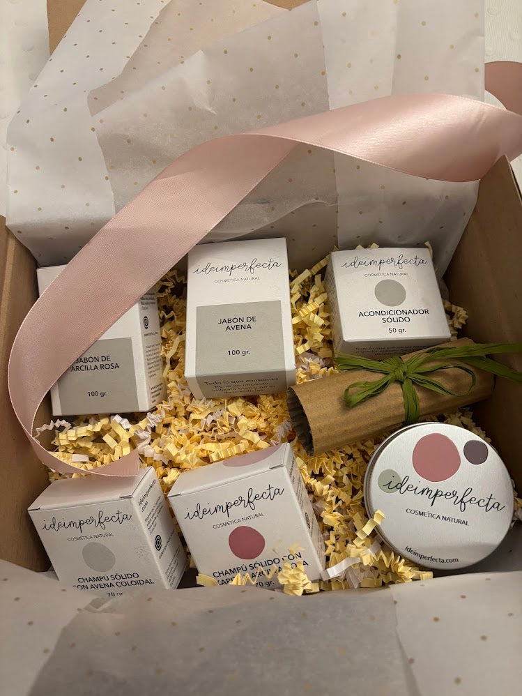 El Pack El Placer de Cuidar reúne todos los productos de cosmética natural sólida de IDEimperfecta, elaborados a mano en pequeños lotes, con ingredientes botánicos y procesos conscientes. Un regalo pensado para disfrutar del cuidado diario como un ritual real, sencillo y sin artificios.